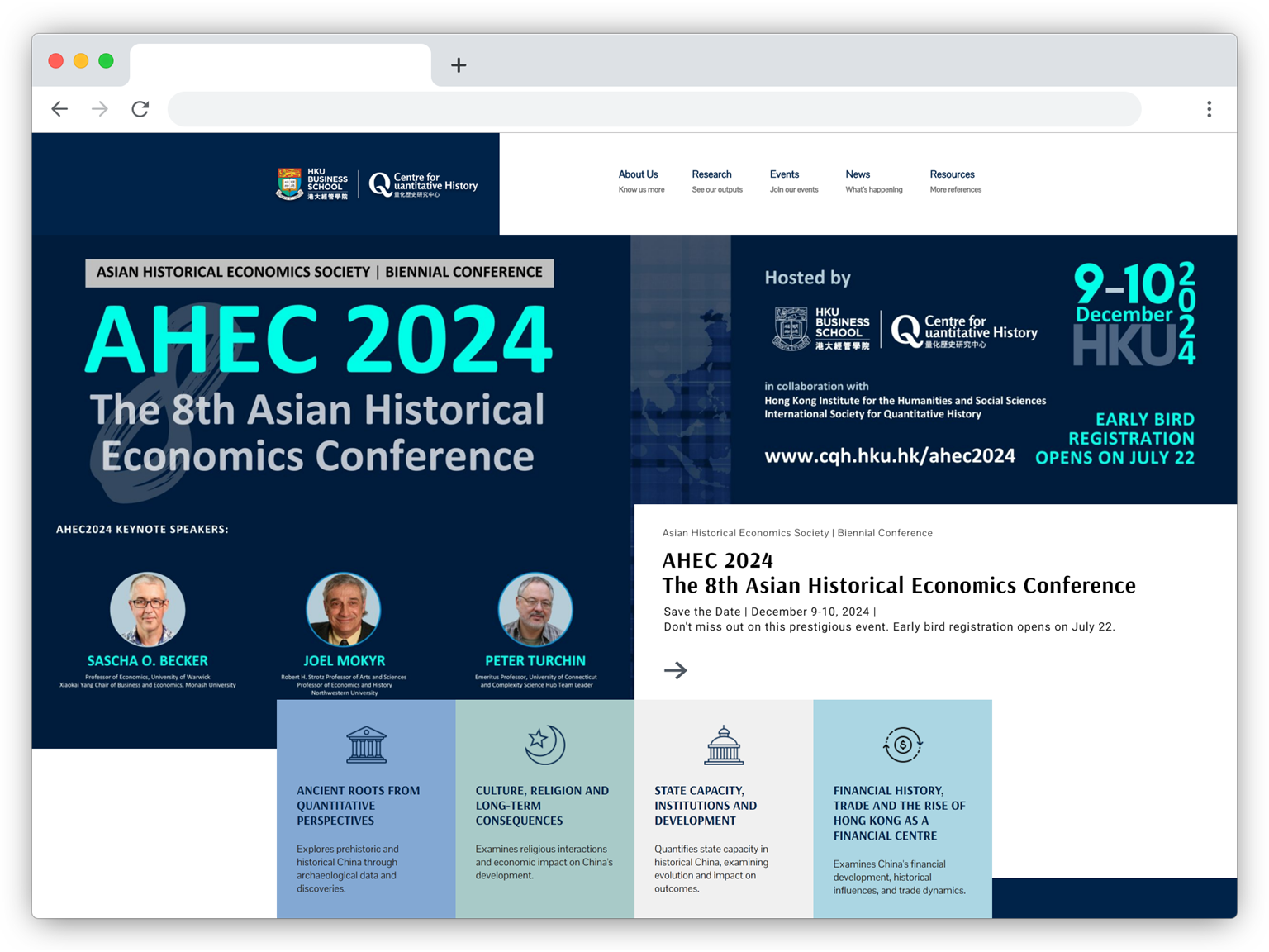 - Hosted major international events including the 10th Quantitative History Summer School cum International Symposium and the 8th Asian Historical Economics Conference.